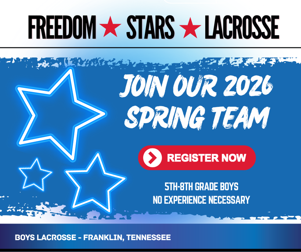 Lacrosse is a Fast growing sport in Middle Tennessee! If you're interested in sponsorship opportunities please Contact: InfoFreedomLAX@gmail.com